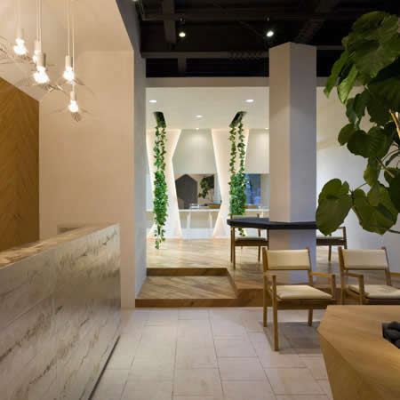 Dessence的日本設(shè)計(jì)師Kazutoyo Yamamoto打造了一家掛著葡萄的美容院,位于日本埼玉。 命名為Garden By Be Area,該項(xiàng)目旨在利用懸浮葡萄空間與為戶外分離。上層樹(shù)葉覆蓋洗發(fā)領(lǐng)域,其裝飾是鑲木地板和木制柜。玻璃等候室配有兩棵大樹(shù)和木制家具。美容院外觀是反射面的表面。Yamamoto說(shuō),他試圖創(chuàng)造一個(gè)空間“表達(dá)現(xiàn)代自然的和諧”。