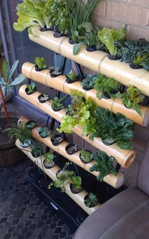 4 利用多層花架省空間 小戶型種菜必學 用一個竹筒子每一節種不同的蔬菜 一次性可以吃到很多種類的蔬菜啊,哈哈