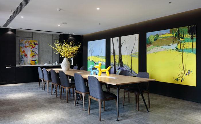 設計公司辦公室會議室設計:家具、畫、綠植、鮮花、樂器構成一個迷人的空間,在這樣的空間中開展會議,靈感會無處不在。