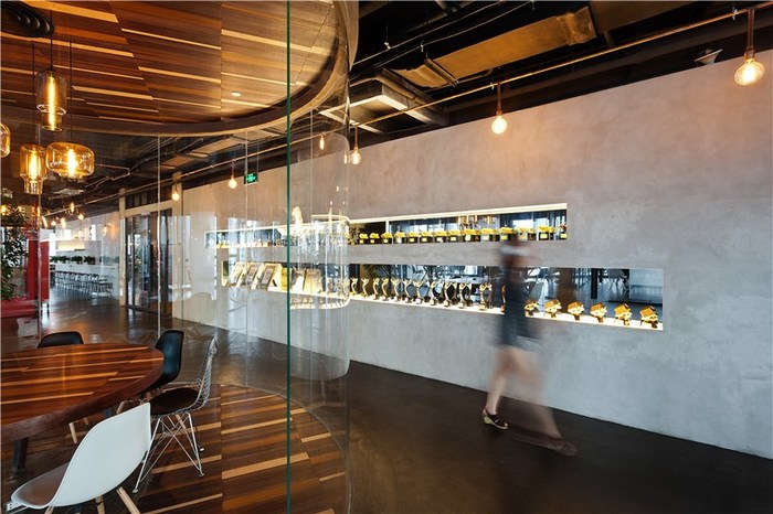 室內裝飾時收銀臺后方必須是墻壁,不可有讓人走動的通道。若是玻璃幕墻的大樓,收銀臺設置在不動方,其背后卻正好是玻璃那么就應將這一面的玻璃用窗簾或裝飾板遮起來。