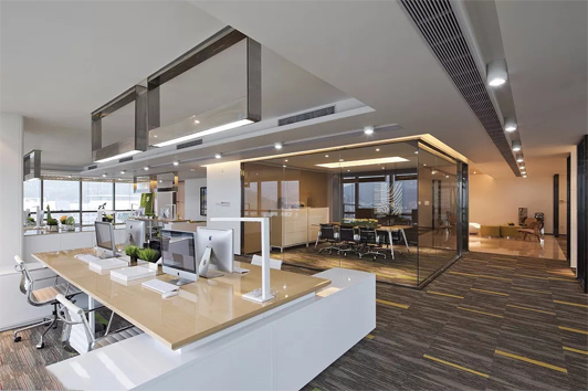 在辦公室裝修中面積越小,就越考驗設計師的功力。主要是因為面積較小,但又需要兼顧基本的功能性需求。可以利用開放式、增加落地窗、靈活運用隔斷、改變層高等設計方式,這樣即實現了空間的功能分區,又保持了空間的完整性。同時還應注重對辦公環境的研究,將自然環境引入室內,給辦公空間帶來一派生機。