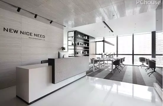 而是先將大的辦公室板房空間通過不同材質、顏色、燈光作解構,將材質依照其各自肌理條件,觀察在燈光下呈現(xiàn)出的顏色和狀態(tài),以此為設計依據,才開始考慮圖上的設計作業(yè)。在拆分然后歸納材質和色調變化之后,發(fā)現(xiàn)整個空間在色調的構成上呈現(xiàn)的是較大比例,不同亮度和存在狀態(tài)的灰和白的主調。