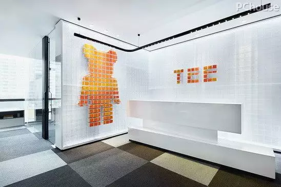 利用“某某熊”造型和變化的橙色為設計中調節(jié)空間氛圍的元素,以大面積的白通過形態(tài)的不同在燈光下形成多元層次,輔以細微變化的深灰,建立空間秩序。