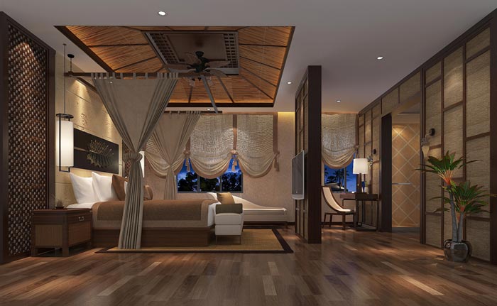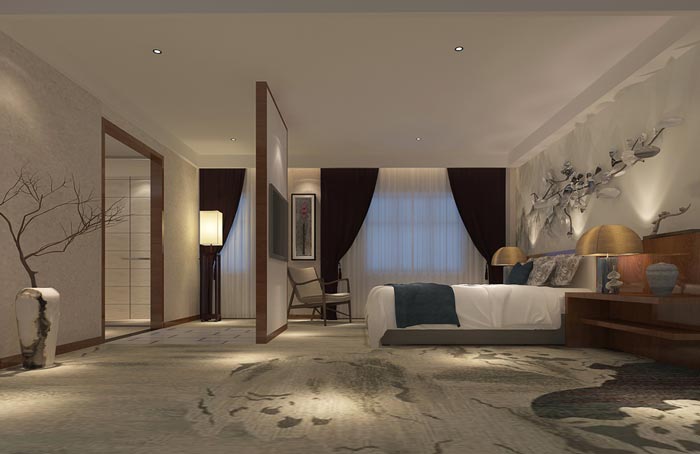 【新中式酒店裝修設(shè)計】套房:在這里中式裝飾更加明顯,也漸漸多了起來,就是希望讓人遠(yuǎn)離外面的世界,雖然我們無法逃離現(xiàn)在的生活,但是設(shè)計師希望讓我們得到暫時的脫離,目的就是希望在這里讓客戶進(jìn)行的思考,讓心情得到一次釋放,空間的跨越讓我們得到的是對人生的思考。