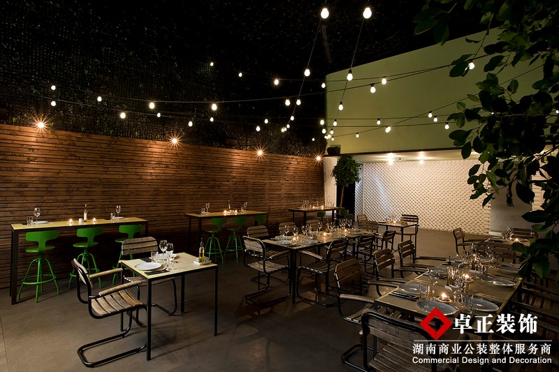 本次門店裝修設計,以花園為主題,在不算規則的場地中加入綠植,既有觀賞性同時也能起到隱蔽功能,最大限度地利用空間,打造舒適優雅的用餐環境;;
