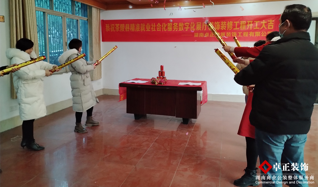 該數(shù)字展廳裝修工程項目是湖南卓正裝飾公司為茶林縣精準(zhǔn)就業(yè)社會化服務(wù)數(shù)字化展廳空間從設(shè)計、消防、施工一站式整裝工程,根據(jù)中國傳統(tǒng)文化選擇黃道吉日已于日前開工,值此春風(fēng)拂柳,萬物復(fù)蘇的良辰美景之時,湖南卓正裝飾感謝茶林縣精準(zhǔn)就業(yè)社會化服務(wù)展廳公司對我們的信任支持,并熱烈祝賀茶林縣精準(zhǔn)就業(yè)社會化服務(wù)數(shù)字化展廳裝飾裝修工程開工大吉,預(yù)祝項目工程完滿峻工!